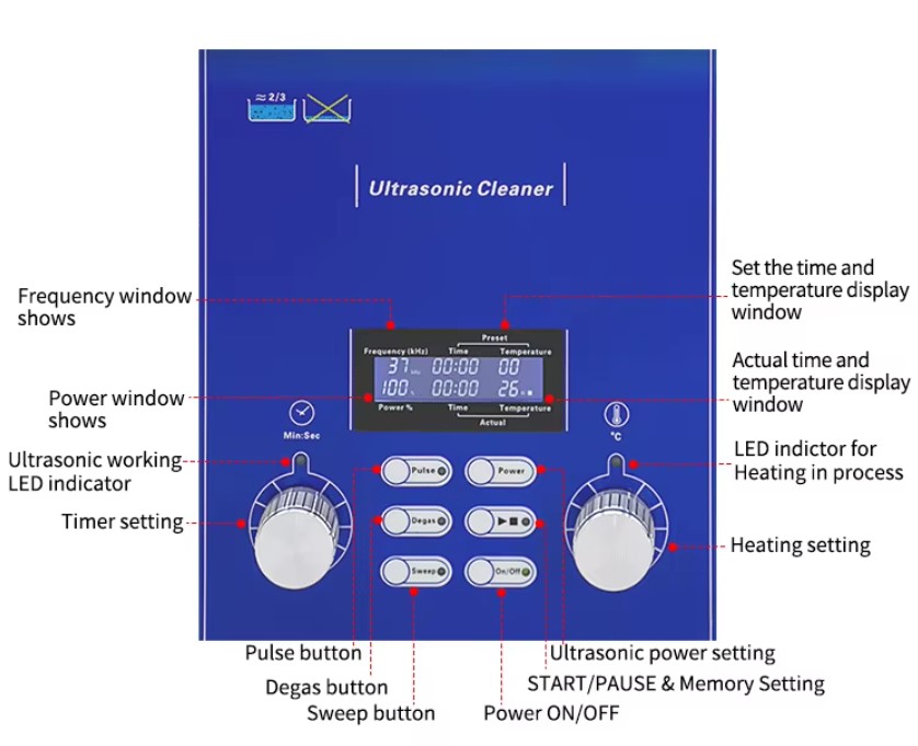 La funzione Sweep integrata in modo permanente garantisce una distribuzione uniforme del campo sonoro e quindi una rimozione uniforme dello sporco. Ideale per grassi, oli e pigmenti, poiché questi si dissolvono rapidamente nella soluzione detergente.