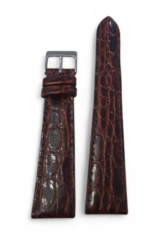 Cinturino in pelle Stampa cocco lucido punta a scalare col. Bianco colori disponibili: blu, verde,gold,marrone, nero, bianco misure disponibili: mm. 14,16,18, 20, 22